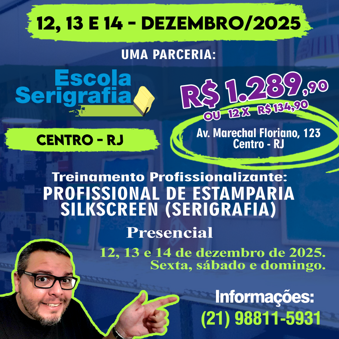 A ESCOLA SERIGRAFIA é uma empresa de Treinamentos Profissionalizantes na área de Estamparia Têxtil e afins. Por aqui, já passaram mais de 2400 alunos. Atualmente, a Escola Serigrafia, além de oferecer seu treinamento profissionalizante (presencial), ainda atua como Fábrica de Equipamentos de Serigrafia, Revenda Especializada em produtos de Serigrafia e também presta serviços de Consultoria para empresas do setor.